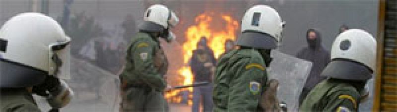 Unos 300 encapuchados han vuelto a tomar las calles de Atenas para protestar por la muerte, a manos de la policía, de un joven de 15 años. El primer ministro griego ha pedido aislar a los violentos. (09/12/08).