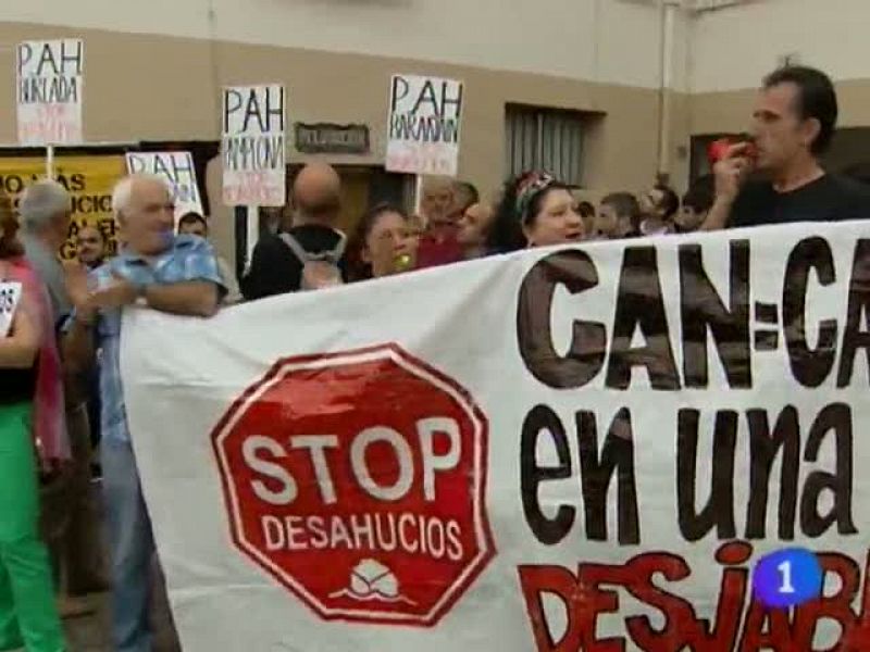 El clamor social para terminar con los deshaucios inmobiliarios llega a las instituciones públicas. El Parlamento foral ha aprobado una declaración institucional en la que insta al ejecutivo central a paralizar estas medidas mientras se reforma la legislación al respecto (12/11/2012).