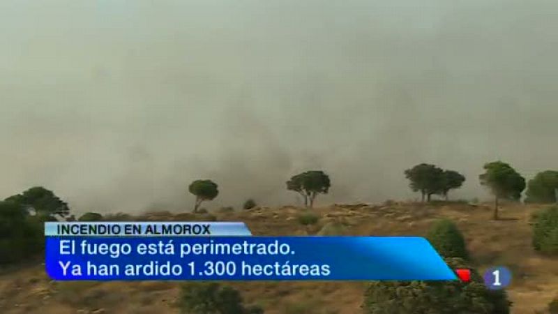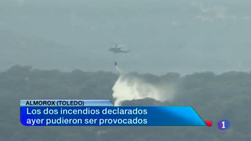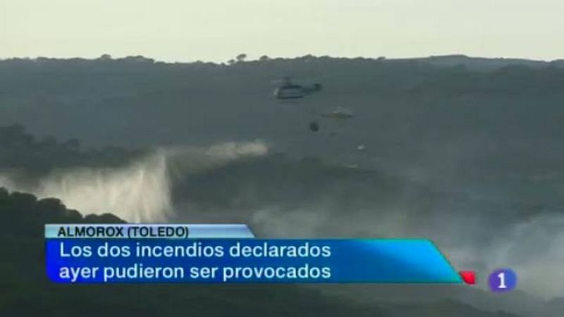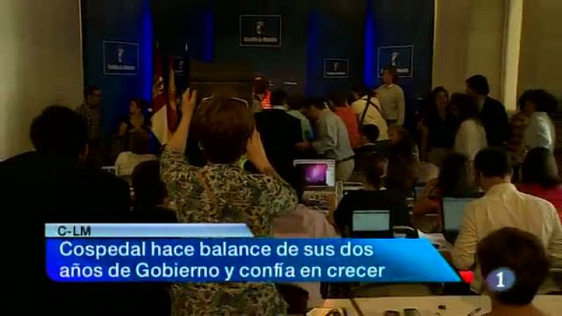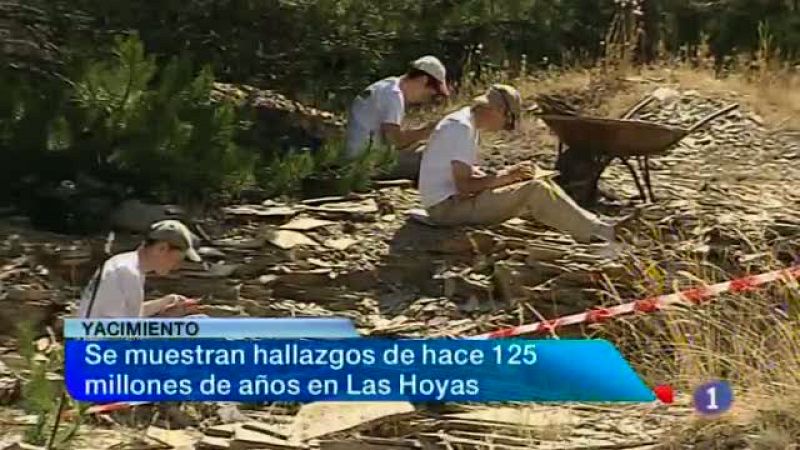 Fauna y vegetación que existió hace 125 millones de años en el cretácito superior. Son algunos de los hallazgos del yacimiento paleontológico de las Hoyas que se han mostrado hoy a más de un centenar de personas en una jornada de puertas abiertas. El descenso del paro en más de 19 Mil puestos de trabajo -durante los siete primeros meses del año- es la mejor noticia para la presidenta regional desde que se hizo cargo del Ejecutivo. Declaraciones de María Dolores de Cospedal en el balance de sus dos años de legislatura. Tres Mil hectáreas afectadas, la mayoría de viñedo, por la fuerte granizada que cayó en Alpera, en Albacete. En la información meteorológica, todas las provincias de Castilla-La Mancha están hoy en alerta amarilla por altas temperaturas.