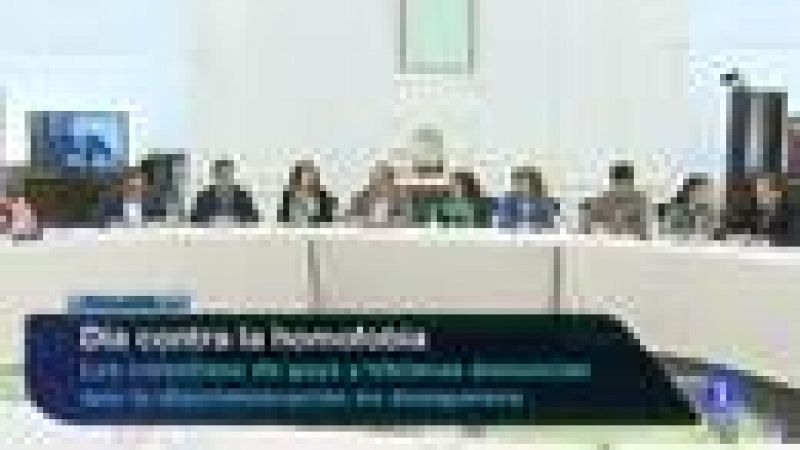 Reunión de apoyo al sector del tabaco. En Cantabria, con representación de Extremadura, La Rioja, Canarias y Andalucía. Han firmado este mediodía una declaración institucional para defender el empleo en este cultivo. Más del 90 por ciento del tabaco nacional se produce en nuestra tierra... Colectivos de gays y lesbianas insisten en que siguen sufriendo discriminación. Se conmemora hoy el día contra la homofobia. Estos colectivos reclaman planes para evitarla en los centros educativos, las familias y las instituciones... Huelga nacional en el sector de las conservas vegetales. En Extremadura los sindicatos hablan de un seguimiento del 90 por ciento. Temen que el sector no alcance un acuerdo sobre su convenio colectivo, y entonces tengan que regirse por el Estatuto de los Trabajadores... Cuatro mil metros cuadrados dedicados a la aventura. En el recinto ferial de Ifeba en Badajoz acaba de abrir la primera feria dedicada a los deportes de aventura y naturaleza. 40 empresas relacionadas con vehículos y el sector turístico se dan cita en este encuentro hasta el domingo.