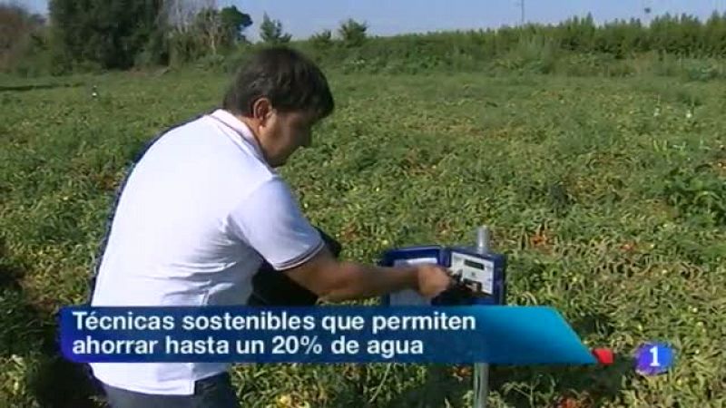 Un producto en el que Extremadura es líder nacional, pero cultivado con técnicas que respetan el medio ambiente. Uso racional del agua en el cultivo de tomate. Cantidades exactas de abono, sin excesos que acaban en los cauces de agua. Una receta de gestión para cada finca... En Economía, se acaban de presentar los Presupuestos Generales del Estado. La partida del Fondo de Suficiencia para Extremadura cae más del ocho por ciento, y la del fondo de Compensación interterritorial casi el 22. Por contra, los presupuestos incluyen 40 millones como deuda histórica... El PP celebra que se incluya la partida en las cuentas del Gobierno central. El PSOE pide que la partida de deuda histórica no se compense con bajada en las inversiones del Estado. A Izquieda Unida, los 40 millones le parecen escasos, e insiste en que el Estado debe poner un plan especial de empleo... Acto castrense de la Guardia Civil en Badajoz. El desfile central del domingo lo presidirá la reina Doña Sofía. Celebran la Festividad de la patrona, la Virgen del Pilar. Está previsto que desfilen 500 efectivos y unos 80 vehículos llegados de toda España... Viaje en el tiempo. Mérida regresa a sus orígenes con Emérita Lúdica. Una recreación de la vida y constumbres en la colonia del Imperio Romano de hace dos mil años. La Legio Quinta ha vuelto a desfilar por la ciudad, y los ciudadanos han recuperado la indumentaria romana durante tres días.