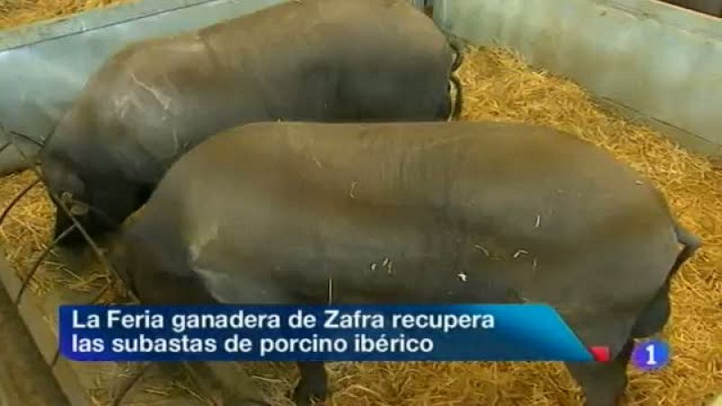 Nueva edición de una de las ferias de ganado más veteranas de España. El ganado vuelve a Zafra. 2.500 cabezas. 500 expositores. Profesionales y curiosos en sus calles. Como novedad, la feria recupera las subastas de cerdos ibéricos, suspendidas en la edición anterior debido a la crisis del sector... Alrededor de 2.200 docentes de los centros concertados comenzarán a cobrar sus nóminas de septiembre a partir de mañana. Sufrían un retraso. El DOE publica hoy la resolución definitiva de los conciertos educativos, con un número de unidades similar al del año pasado... Comienzan los actos para conmemorar la festividad de la patrona de la Guardia Civil. Hoy con jornadas de seguridad en Badajoz y la inauguración de muestra sobre la Benemérita frente al Terrorismo. Este domingo, la reina Doña Sofía, amadrinará los actos centrales... Cómo prevenir el ictus y otras patologías cerebrales. Es lo que enseñan hoy en Cáceres en este autobús, donde además están realizando pruebas gratuitas. Es la Semana del Cerebro. Alrededor de 2.500 extremeños sufren un ictus cada año.