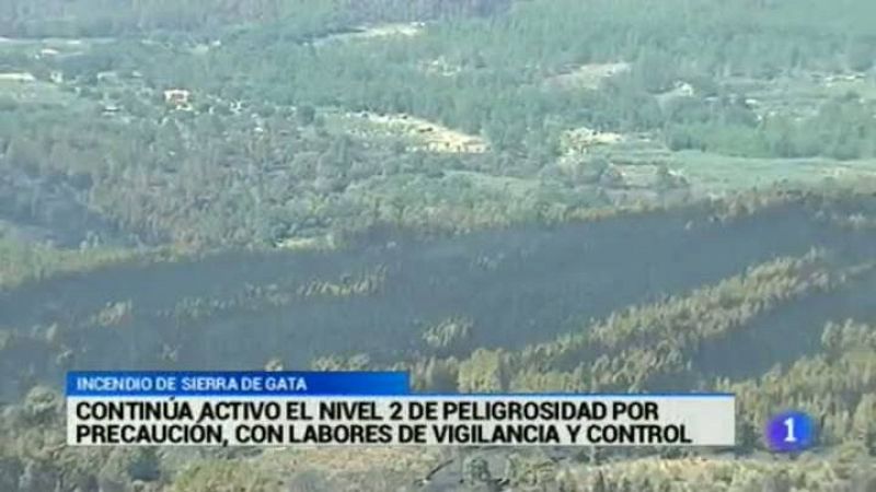 Un día más, continúa activo el nivel 2 de peligrosidad en la Sierra de Gata. El incendio aún no se ha extinguido y el viento de la zona podría reavivar las llamas. El objetivo de esta alerta es de precaución, mientras las localidades afectadas van recuperando la normalidad... Mientras tanto, otro incencio se produjo ayer tarde en la región. En este caso, en la localidad cacereña de Logrosán, junto a la presa del Ruecas y cerca de la del Cubilar. Un total de 40 personas trabajan en la zona, además de 8 medios aéreos y 9 terrestes...Satisfacción en el primer encuentro que han mantenido los sindicatos Comisiones Obreras y UGT con el nuevo director de la Agencia Extremeña de Cooperación Internacional. La cita ha servido para establecer prioridades. Algunas de ellas, situar de nuevo a los sindicatos como ejes en asistencia pro-derechos humanos, eliminar trámites burocráticos y un plan de rescate a ONGs.
