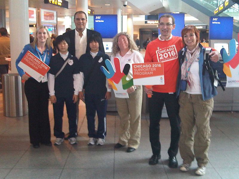 La delegación española que representa la candidatura de Madrid 2016 llega al completo a Copenhague. (30/09/09)