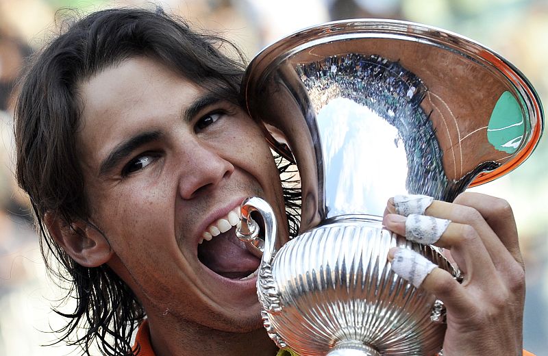 Nadal ha recibido su cuarto trofeo consecutivo del Masters 1000 de Roma, tras ganar la final al serbio Novak Djokovic (03/05/2009).