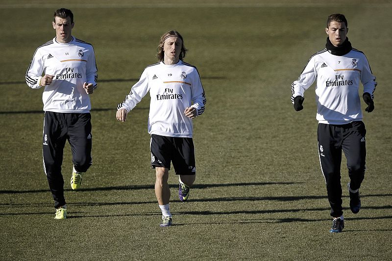 El italiano Carlo Ancelotti, entrenador del Real Madrid, dirigió la penúltima sesión antes de viajar a Xátiva para medirse al Olimpic el sábado en la ida de los dieciseisavos de final de la Copa del Rey, mientras que Cristiano Ronaldo se reincorporó al trabajo. 05-12-2013