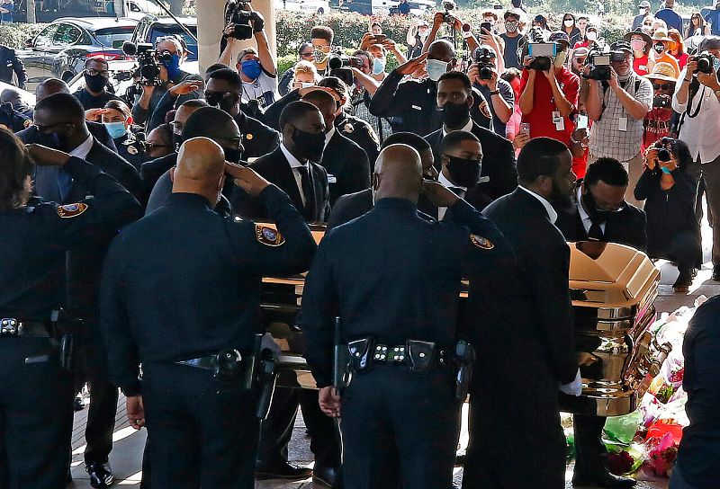 Multitudinario funeral en Houston a George Floyd, cuyo féretro está ya en el cementerio en el que será enterrado. Un funeral que ha contado con numerosas personalidades y mensajes de apoyo y que coincide con el día en que, a través de las redes sociales, Donald Trump ha vuelto a crear polémica sobre la actuación policial en Estados Unidos. El alcalde de Houston, Sylvester Turner, ha anunciado en un discurso durante el funeral que la policía de la ciudad no podrá usar técnicas de asfixia en los detenidos. Ante el aplauso del público, Turner ha explicado que planea firmar una orden ejecutiva para formalizar la prohibición.