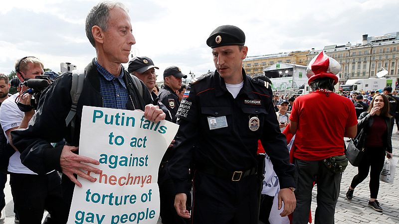 - Protestaba en la Plaza de Moscú contra las torturas a gays en Chechenia