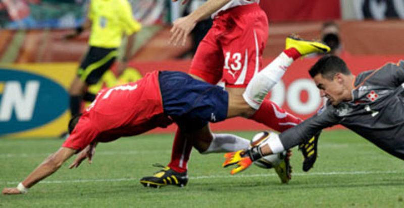 La selección de Marcelo Bielsa ha puesto la directa hacia los octavos de final del Mundial de Sudáfrica tras imponerse por 1-0 a Suiza con un gol de Mark González. Con este resultado, Chile se afianza como primera del grupo de España, su último rival antes de las eliminatorias por el título.