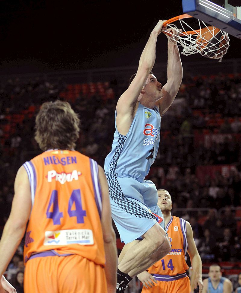 El Power Valencia logró una importante victoria ante el Unicaja por 92-87, que permite al conjunto local deshacerse de un rival directo para poder mantener la cuarta plaza que actualmente ocupa en la clasificación (29/03/10).