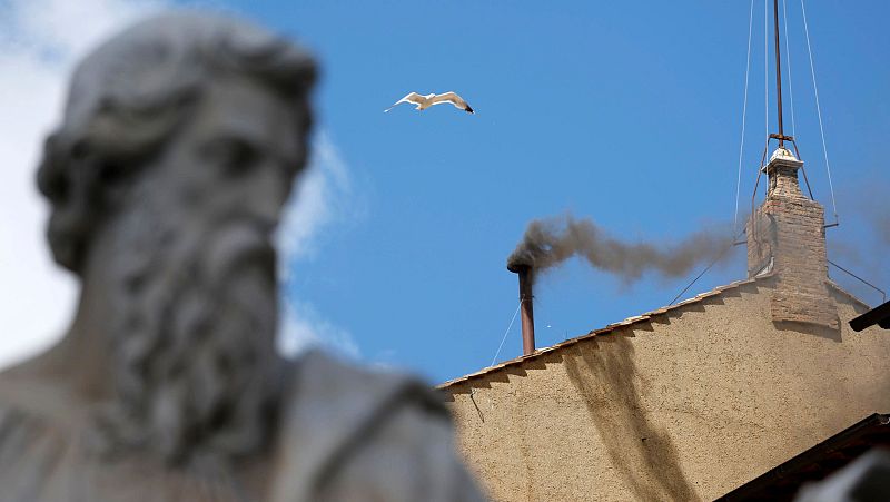 Sagrario Ruiz de Apodaca, enviada especial de TVE, llevaba 46 minutos mirando la chimenea, el pasatiempo preferido por todos estos días, aunque ella lo hacía en San Pedro. Si bien esta periodista empezó de día, con el paso de las horas se quedó a oscuras y con urgencia hubo que encender los focos. Tampoco le sirvió lo que tenía preparado.