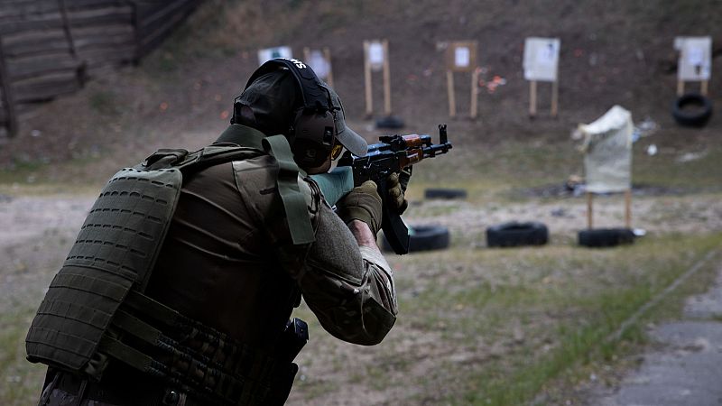 Foto: Un voluntario del Batallón Revancha entrena en las afueras de Kiev (EFE/Orlando Barría)