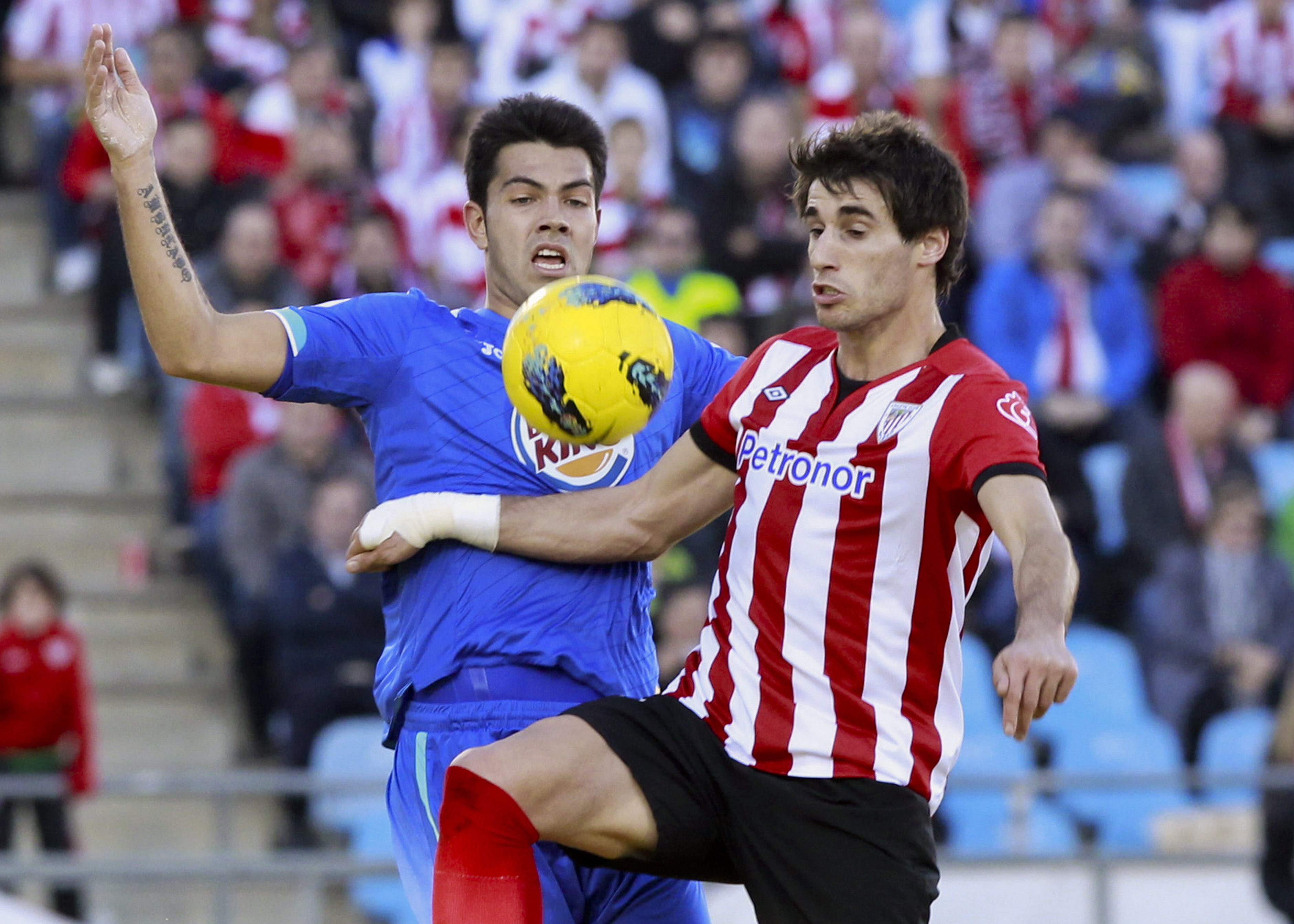 Iker Muniaín, que se convirtió en esta tarde en el jugador más joven de la Liga en alcanzar los 100 partidos oficiales, manejó el ataque junto con Ander Herrera creando los espacios para que los atacantes llegasen con claridad a la meta defendida por Moyá. En el Getafe, Güiza lo intentó con buenos desmarques, pero la defensa rojiblanca estuvo atenta para lograr que la primera parte acabara en tablas.