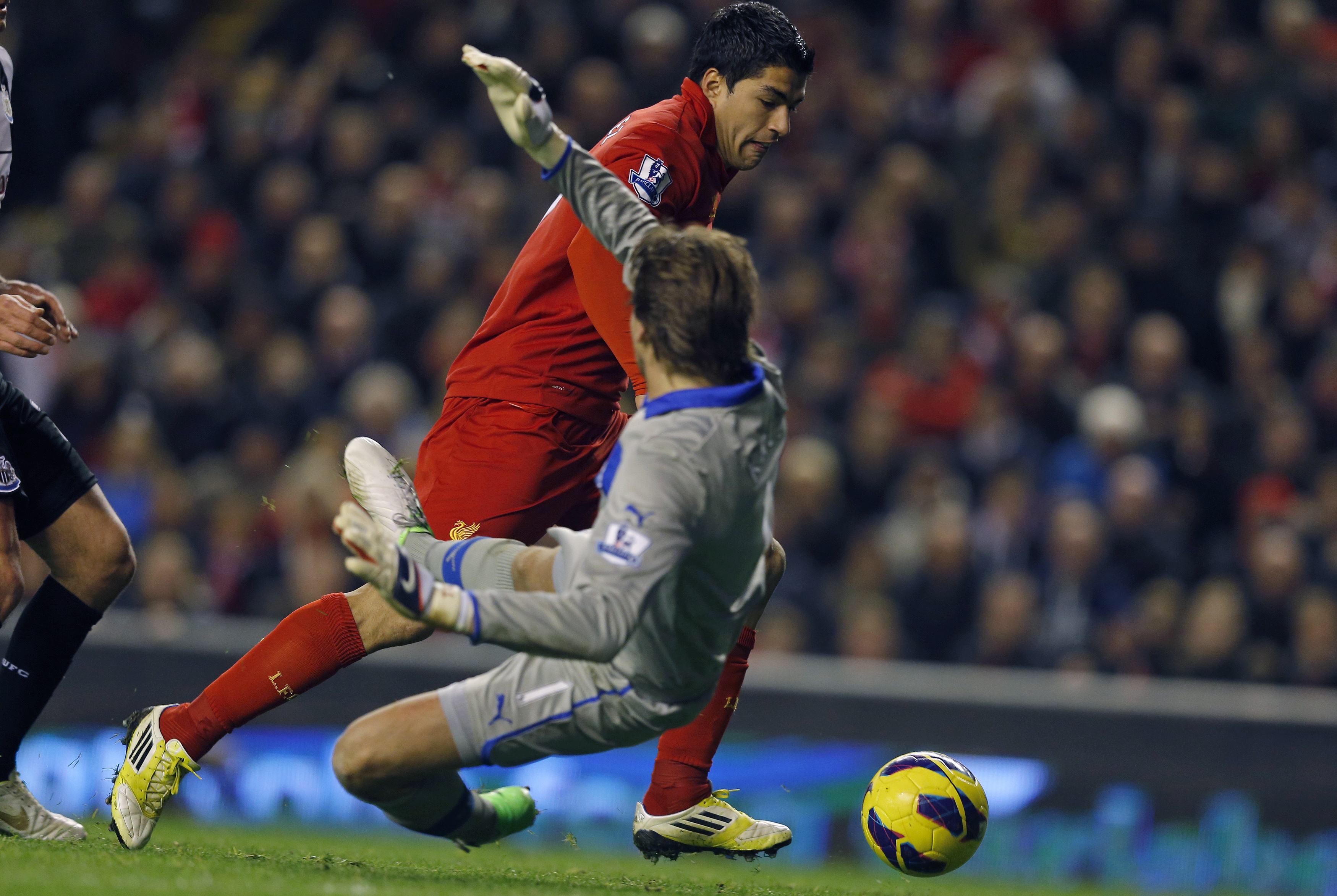 El uruguayo Luis Suárez, en una acción fabricada por el español Jose Enrique, evitó la derrota del Liverpool en Anfield, ante el Newcastle (1-1), en el encuentro de la décima jornada de la Liga de Inglaterra que desde el sábado domina el Manchester United.