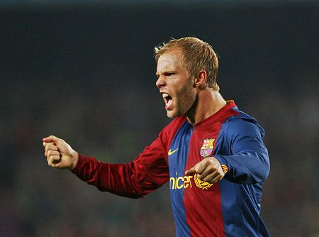 Gudjohnsen celebra un gol del Barça en 'Champions' en 2006 EFE/Albert Olivé