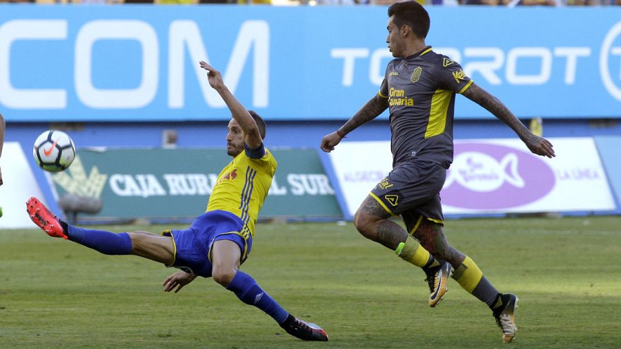 El primer acercamiento claro fue para Las Palmas, pero el argentino Hernán Toledo se encontró con el portero cadista David Gil