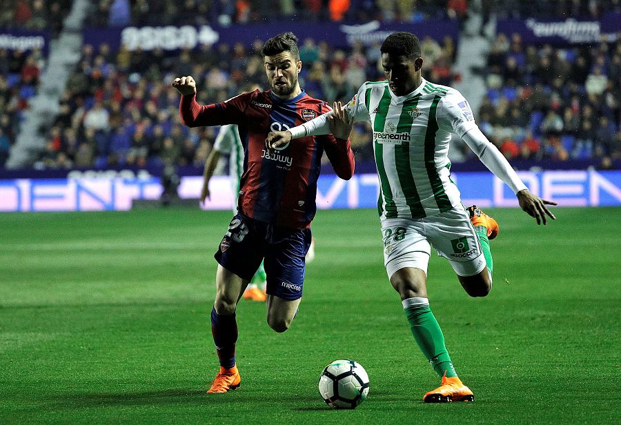 El Real Betis se ha impuesto este lunes al Levante (0-2), en el último partido de la 25ª jornada de Liga, y se acerca así a unos puestos europeos que marca su eterno rival, el Sevilla, todo tras un resultado que mete en problemas al cuadro granota, con sólo un punto de renta sobre los puestos de descenso.