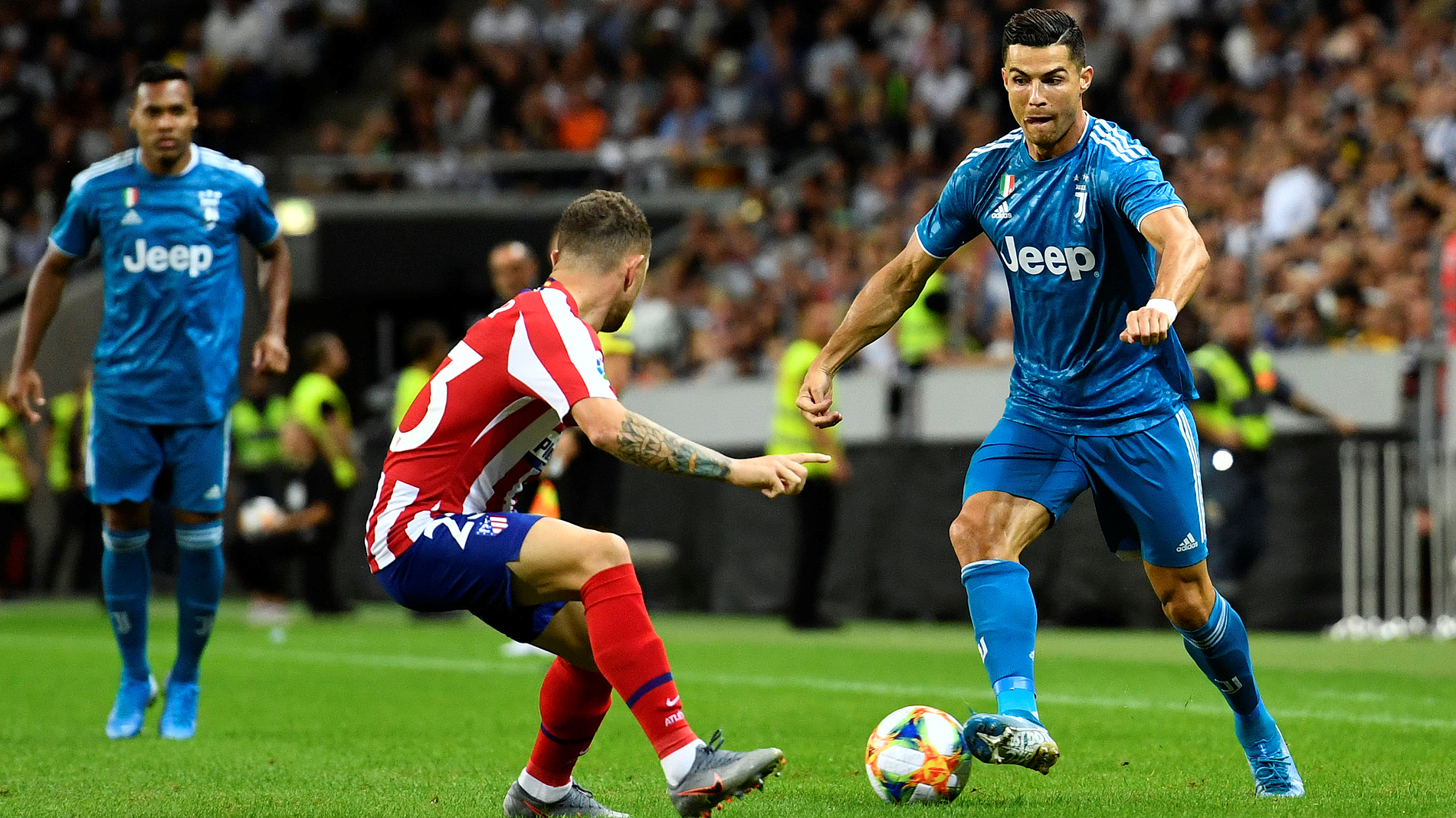La pelea entre Cristiano y Joao Félix comenzó con varias intentonas del jugador de la Juventus, que al principio acaparó más protagonismo que su sucesor gracias al dominio de su equipo. El cuadro transalpino, con Douglas Costa muy inspirado (el brasileño Renan Lodi y el francés Thomas Lemar sufrieron muchísimo), iniciaron el carrusel de ocasiones que se fueron al limbo.