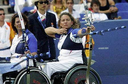 La arquera Paola Fantato compitiendo en Atenas 2004