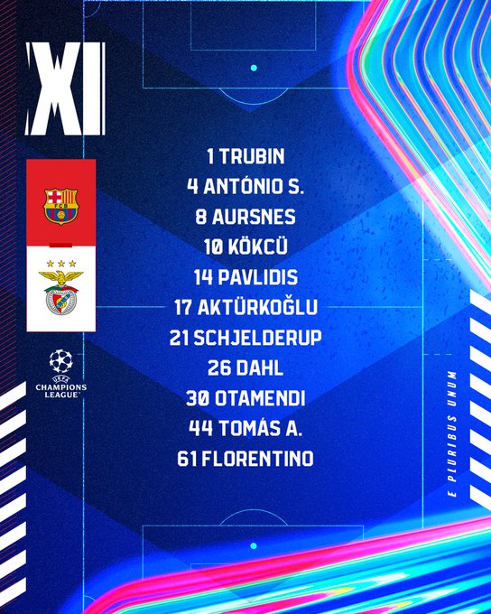 No ha habido sorpresas en ninguna de las alineaciones. Solo un par de apuntes que señala la propia web de la UEFA. En el Barça, la titularidad de Araujo en el centro de defensa (donde es baja por sanción Cubarsí) hace que el uruguayo sea además el capitán. En el Benfica, será un gran test para Florentino, el centrocampista de 25 años que era duda.