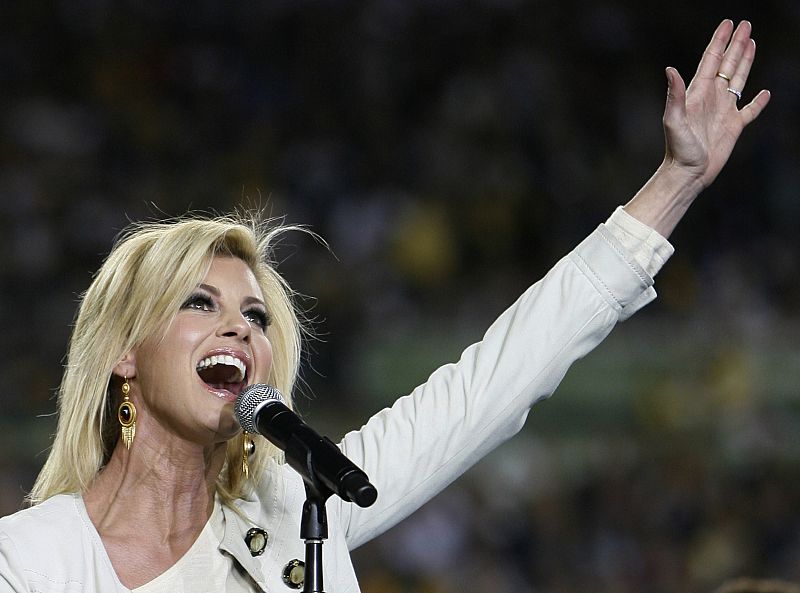 Faith Hill sings "America the Beautiful" prior to the NFL's Super Bowl XLIII football game between the Pittsburgh Steelers and the Arizona Cardinals in Tampa, Florida, February 1, 2009. REUTERS/Jeff Haynes (UNITED STATES)