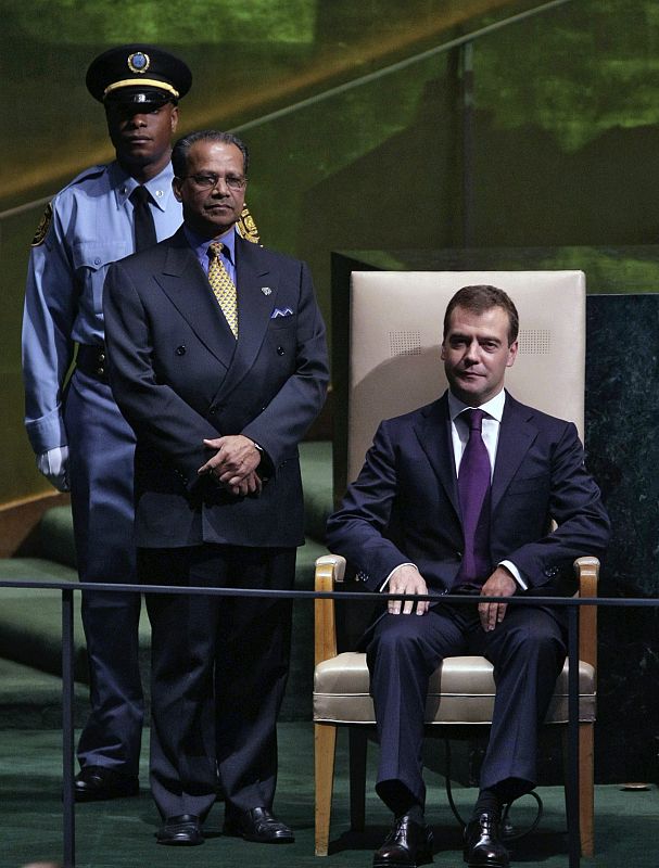 23.09.2009MOS62. NUEVA YORK (EEUU), 23/09/09 .- El presidente de Rusia, Dmitry Medvedev, espera antes de hablar hoy, 23 de septiembre de 2009, durante los debates de la 64 Asamblea General de la ONU que se lleva a cabo en la sede de las Naciones Unidas en Nueva York (EEUU). EFE/DMITRY ASTAKHOV/POOLDMITRY ASTAKHOV
