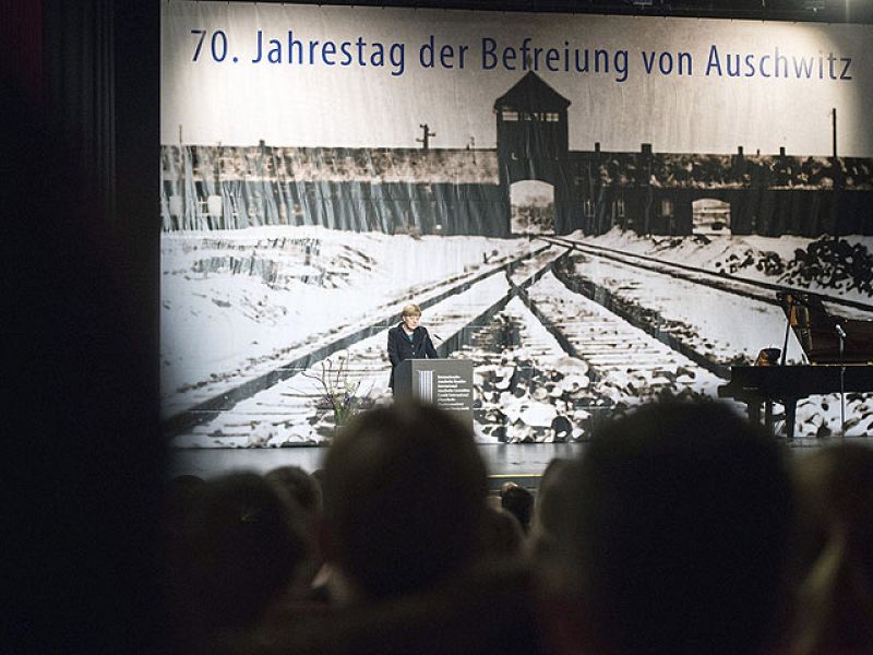 • Angela Merkel dice que los alemanes sienten "vergüenza" por lo ocurrido en el campo nazi.