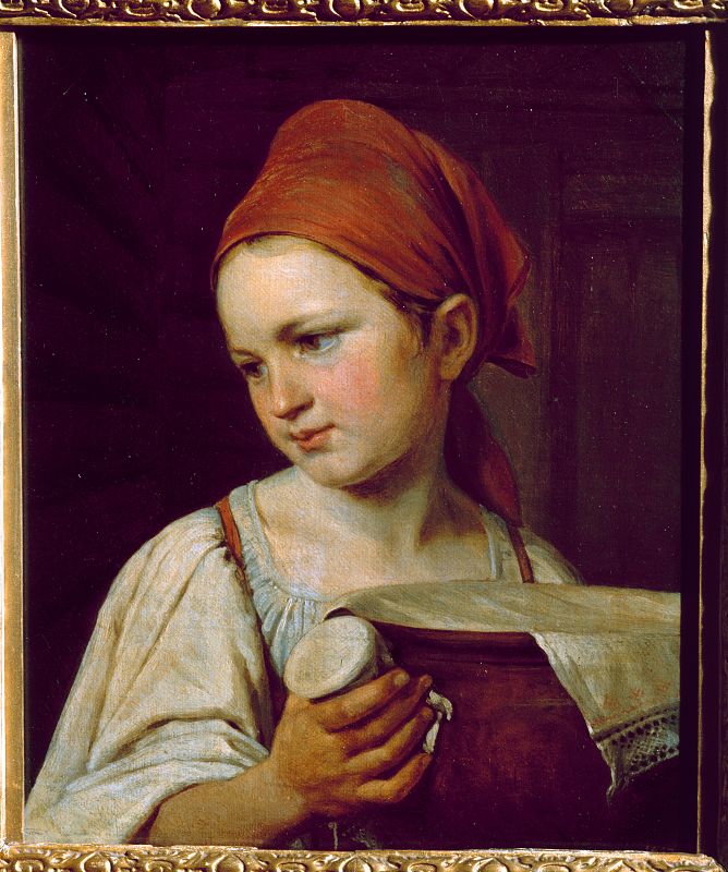 "Lechera (Muchacha campesina con una jarra de leche)" (Antes de 1826 ). Alexey Venetsianov.