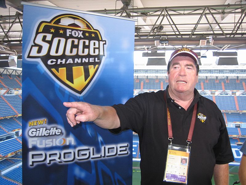 Dermot McQuarrie, Vicepresidente de Producción de Fox Soccer Channel, hace indicaciones a un cámara.