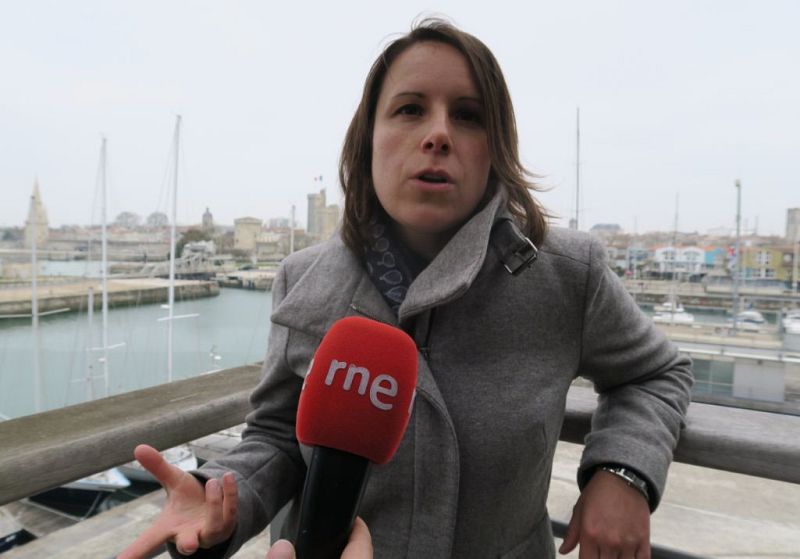 29.03.2016Sophie Cousin, asistente de prensa 'Site de Poitiers - Région Aquitaine Limousin Poitou-Charentes', ante la dársena de La Rochelle.Nómadas -