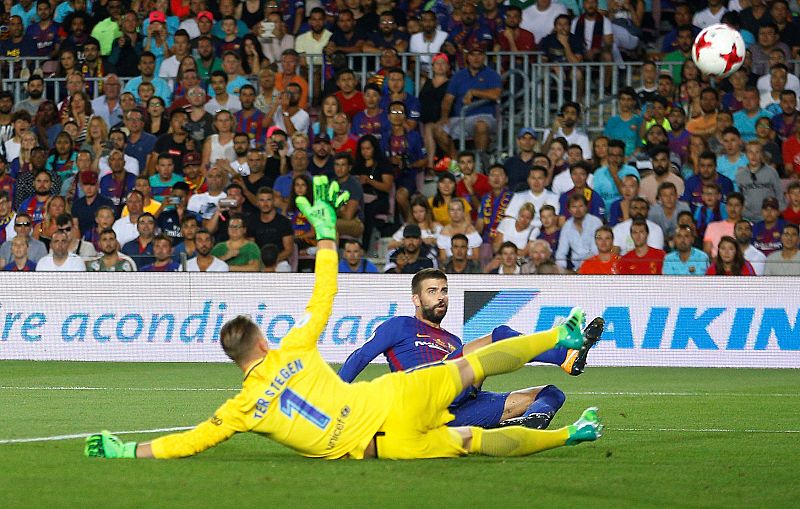 13.08.2017Piqué sorprende a Ter Stegen y marca en propia puerta el 0-1.mb