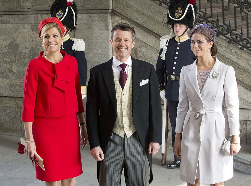 22.05.2012La princesa Máxima de Holanda, el príncipe Federico de Dinamarca y la princesa Magdalena de Suecia han sido los padrinos de Estelle. AFP PHOTO / JONATHAN NACKSTRAND