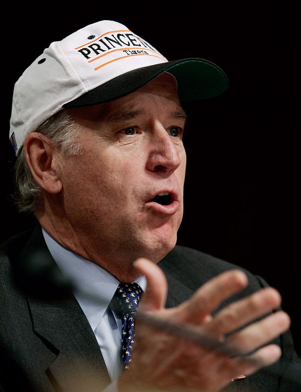 02.10.2008Biden con una gorra de la Universidad de Princeton (11/01/06).REUTERS / Jim Young