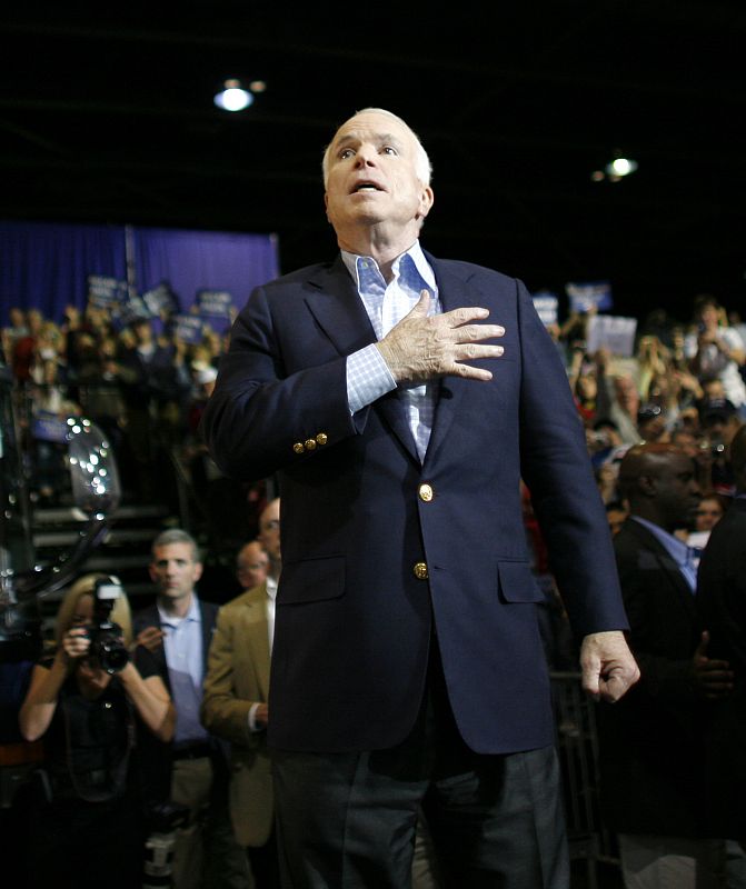 20.10.2008McCain hace un gesto de agradecimiento en Toledo (Ohio, 19/10/08)REUTERS/Carlos Barria