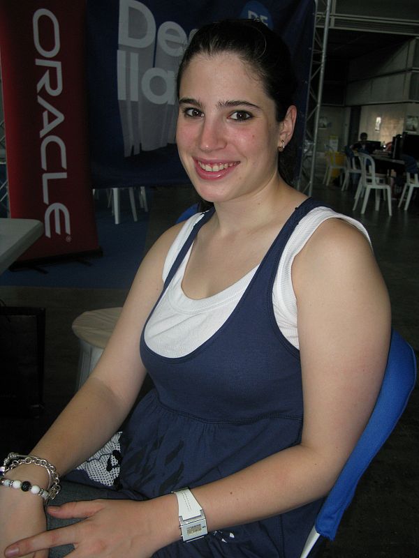 01.08.2008Elisabet, Sabadell, 25 años, recién licenciada en Informática. Viene a presentar un proyecto de robot en el Campus Futuro. Contenta, sorprendida por el buen ambiente, aunque "eso de estar tantas horas en un hangar me pone nerviosa". (01/08/08)RTVE.ES
