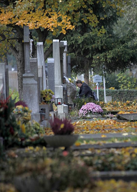 02.11.2009A man stands in front of a grave at the central cemetery two days ahead of All Saints day in Vienna October 30, 2009. Catholics in Austria mark November 1 by visiting cemeteries and gravesides of deceased relatives and friends to remember the dead. REUTERS/Leonhard Foeger (AUSTRIA RELIGION)REUTERS/Leonhard Foeger