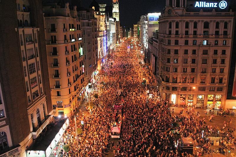 Vista de la Gran Vía desde la plaza del Callao durante la marcha del Orgullo Gay.