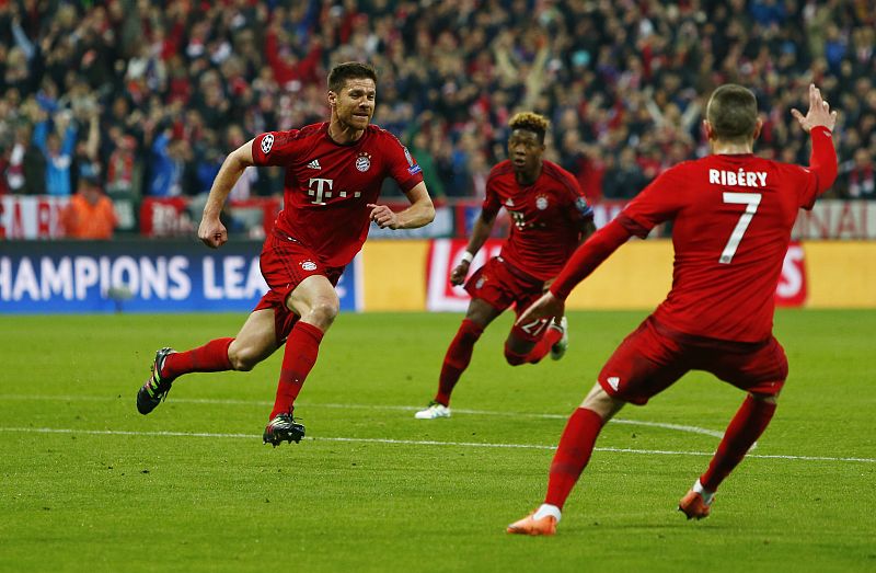 Xabi Alonso celebra su gol en Ribèry