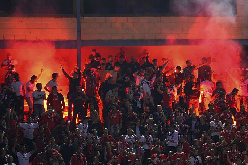 Los hinchas radicales del Benfica han encendido bengalas en el Vicente Calderón