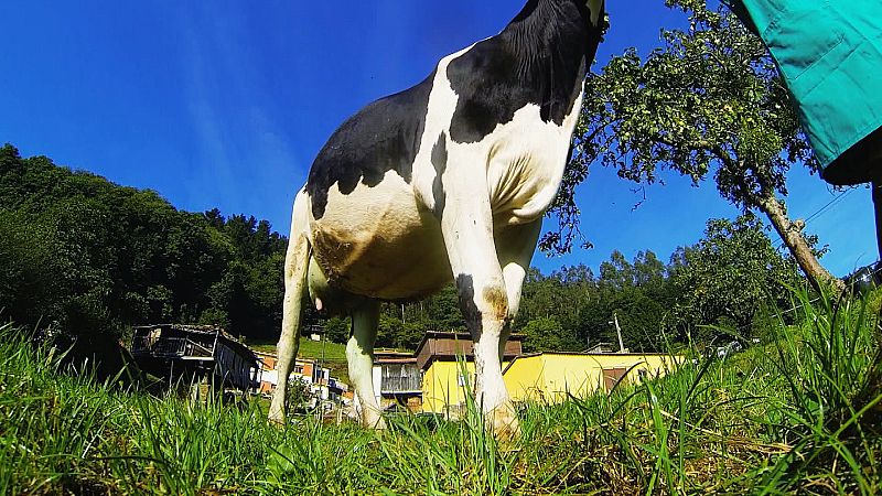 Para fabricar el petit suisse se ordeña a las vacas que darán la materia prima del producto. la leche.