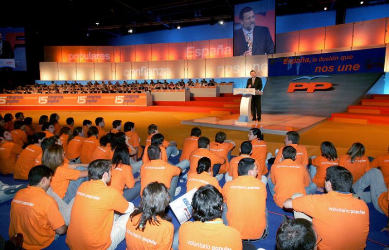 19.06.2008El naranja se convirtió en el color del partido en el XV Congreso de 2004. Voluntarios del PP escuchan atentamente a Rajoy en su intervención.ARCHIVO PP -