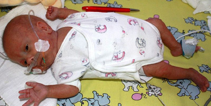 Niño prematuro nacido en Alemania en septiembre de 2009 con tres meses de vida. Pesó 275 gramos