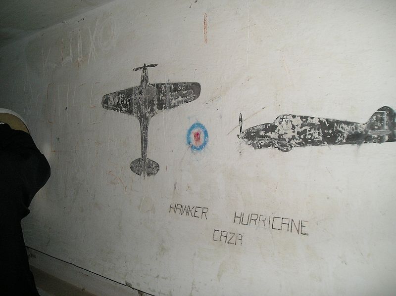 Batería antiárea de Ares, cerca del Ferrol. Son dibujos de los aviones de la RAF para adiestramiento de los artilleros españoles. Los aparatos aliados llegaban hasta las costas gallegas, persiguiendo a los submarinos alemanes