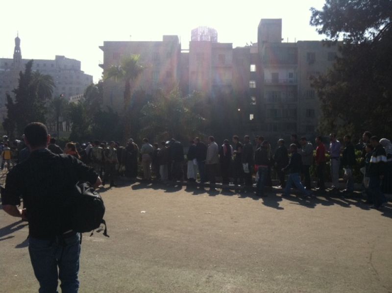 Los egipcios hacen cola para entrar en la plaza Tahrir, 15 días después de que comenzaran las protestas