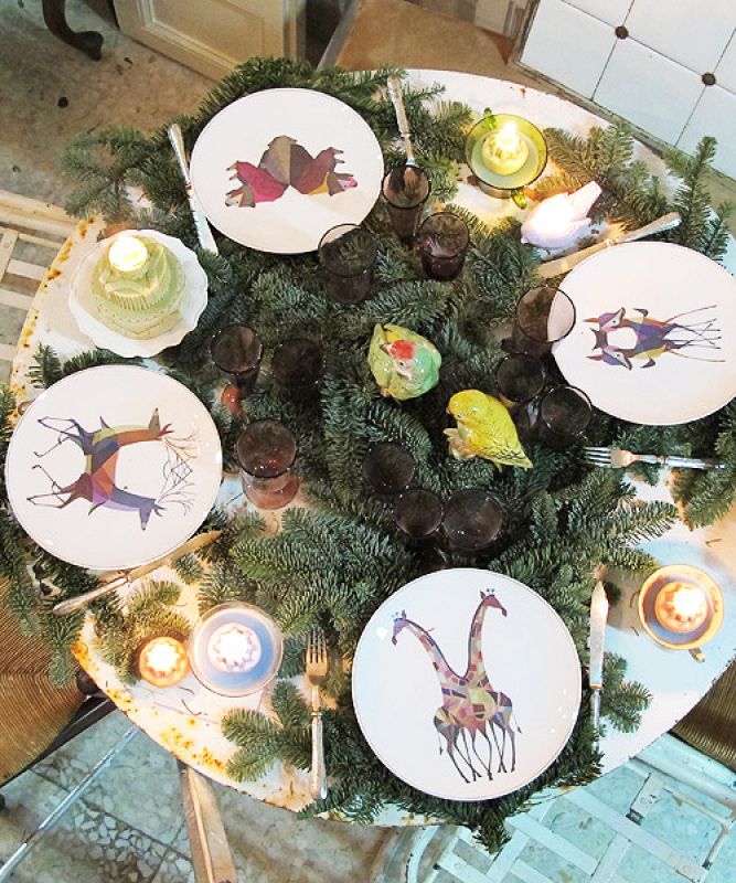 Ideas para decorar la mesa. Montaje de Guille García-Hoz para rtve.es con platos de Abe The Ape, cubiertos de plata, loros de porcelana alemana, cristalería francesa soplada artesanalmente y velas.