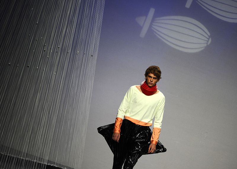 20.09.2011A model displays an outfit by Spanish designer Alba Cardalda during the Ego Cibeles Madrid Fashion Week on September 20, 2011. AFP PHOTO/ PIERRE-PHILIPPE MARCOUAFP