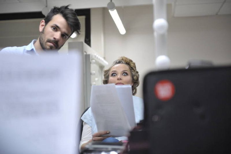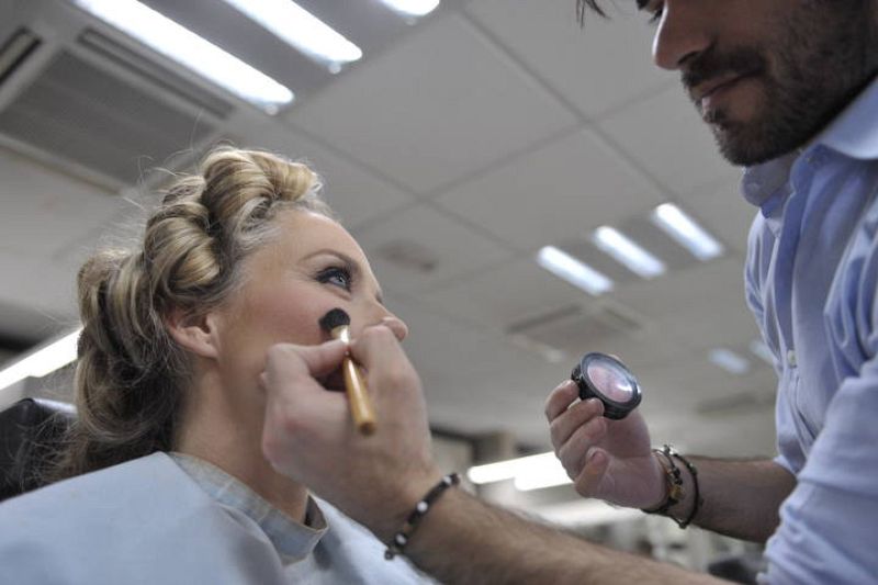 Carolina Ferre, presentadora de 'Destino Eurovisión', se prepara en maquillaje.