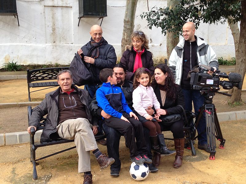 El equipo de Documentos TV posa con Eli, sus hermanos y padres