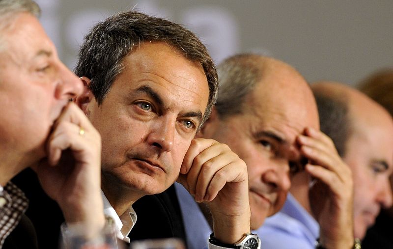 03.02.2012Spain's former Prime Minister Jose Luis Rodriguez Zapatero (2L) and Spain's former deputy prime minister Manuel Chaves (C) attend Spain's Socialist Party (PSOE) congress in Sevilla on February 3, 2012. The Socialist Party Congress is held in Sevilla from February 3 to 5 to elected a new party leader. AFP PHOTO / CRISTINA QUICLERAFP PHOTO / CRISTINA QUICLER