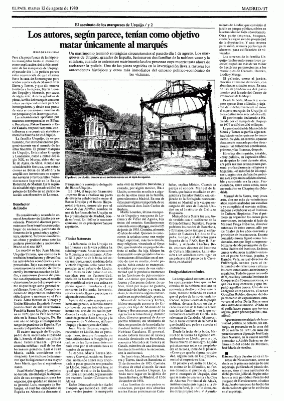 Portadas y noticias de 1980 sobre el asesinato de los marqueses de Urquijo
